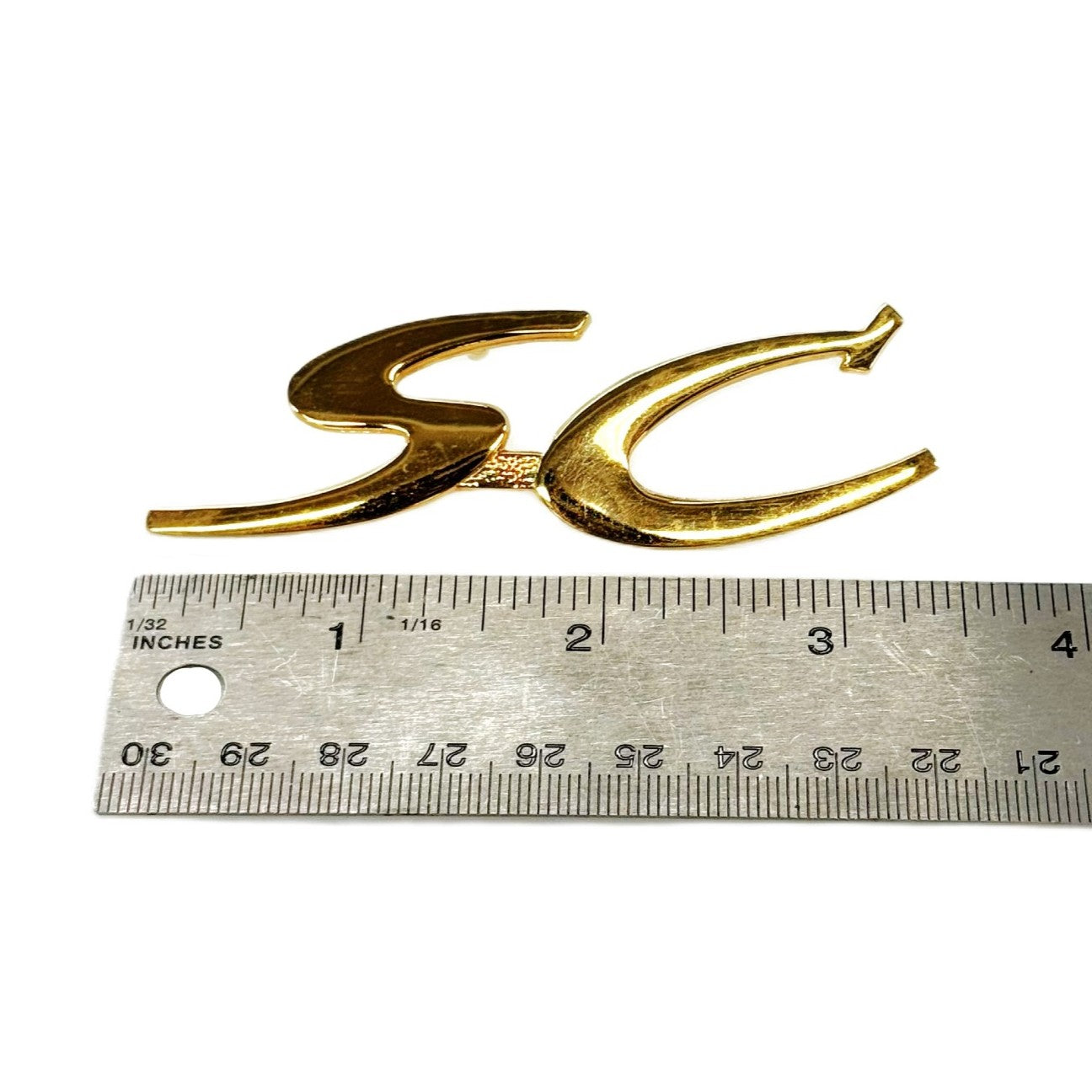 Reproduction "SC" (Super C) Script Emblem for 356C SC 1964-1965. Gold tone finish with fastening hardware.
