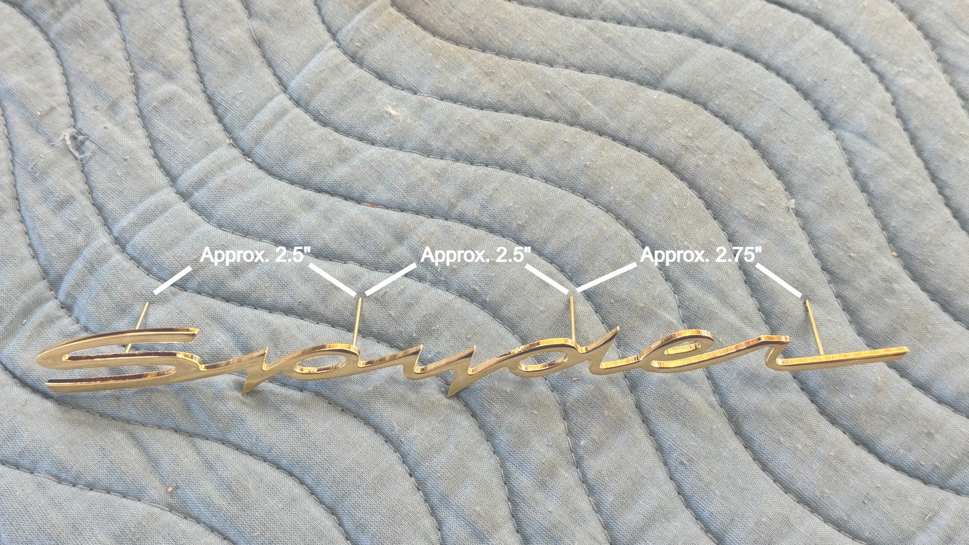 This is a beautiful and correct reproduction of the original 550 Spyder script as seen on both side of an original Spyder. Our scripts are made of stainless steel so they will never rust and laser cut to insure they are correct in shape, size and font thickness.